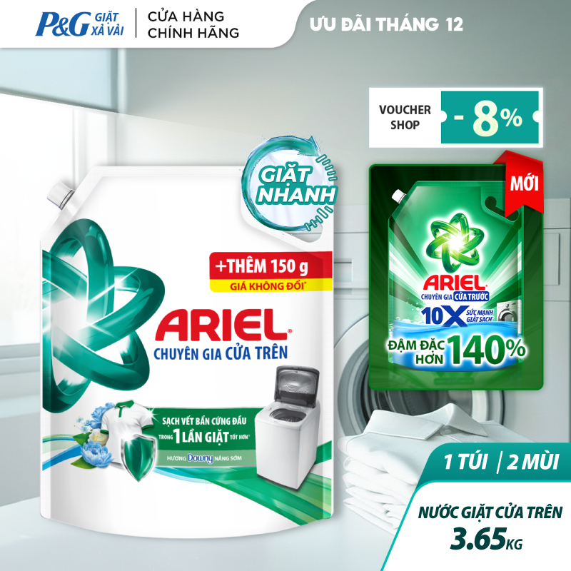 Nước Giặt ARIEL Chuyên Gia Cửa Trên Ngăn Lem Màu Hương Downy Nắng Sớm/ Nước Hoa Túi 3.65KG